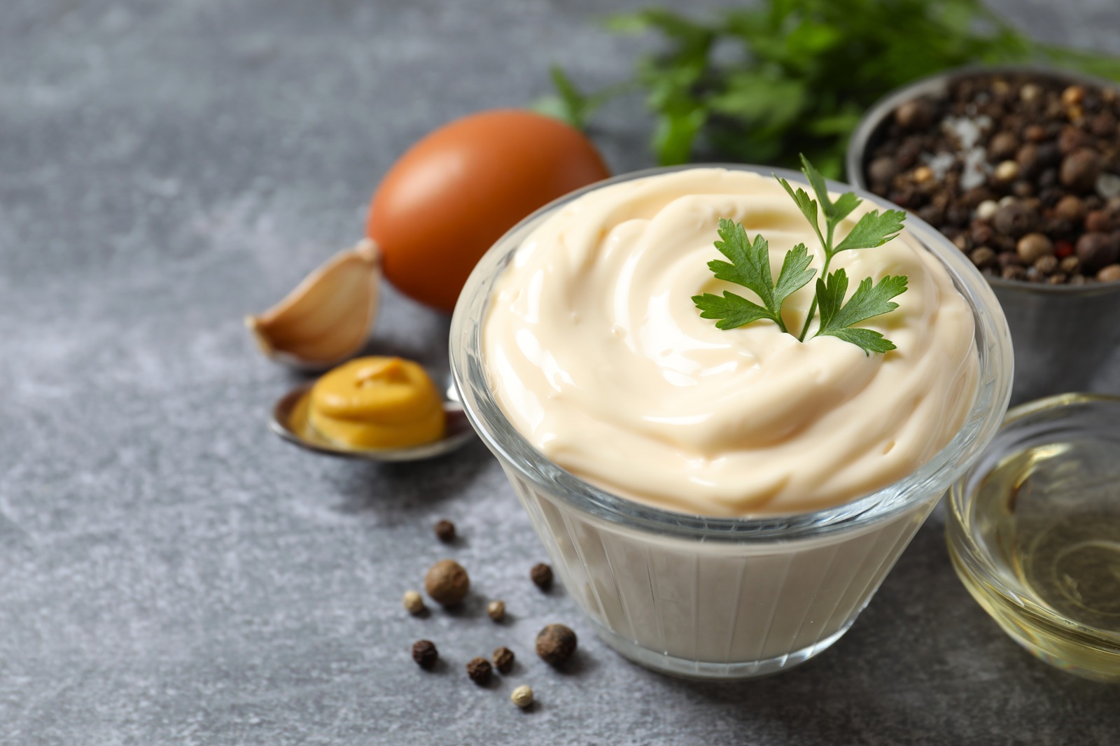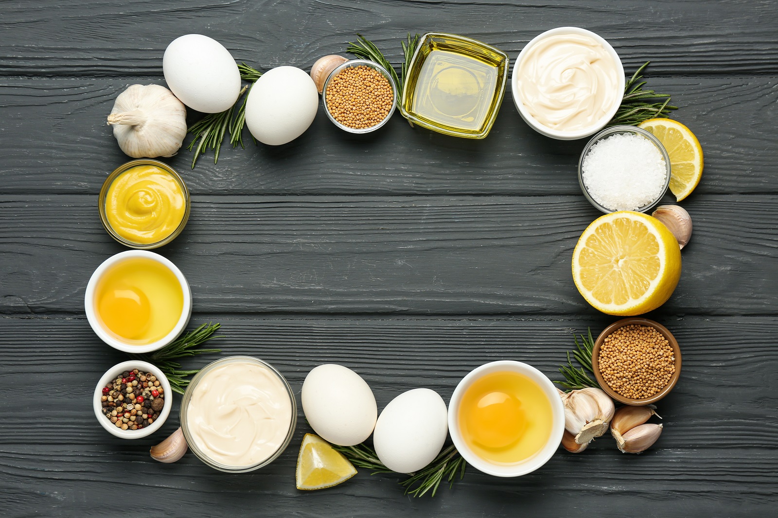 Frame,Made,With,Fresh,Mayonnaise,And,Ingredients,On,Black,Wooden